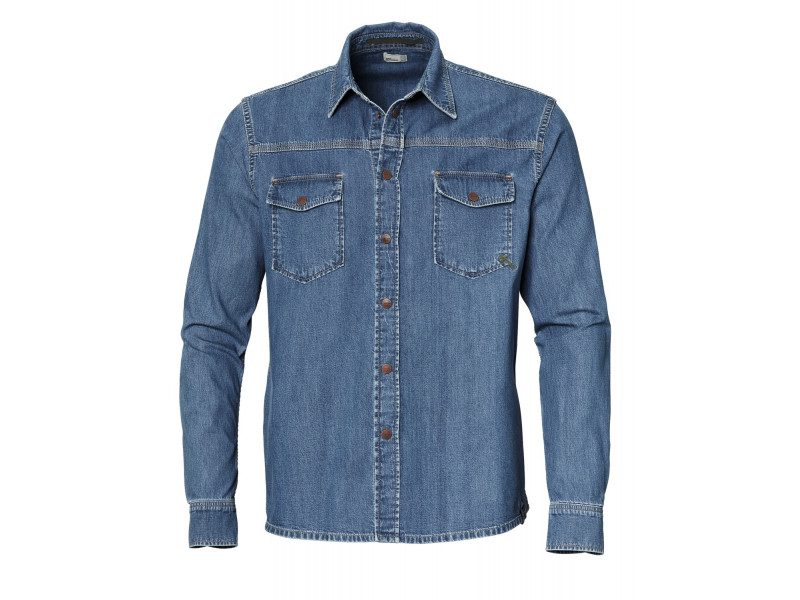 Classinen pyöreällä kaula-aukolla oleva pitkähihainen farkkupaita.