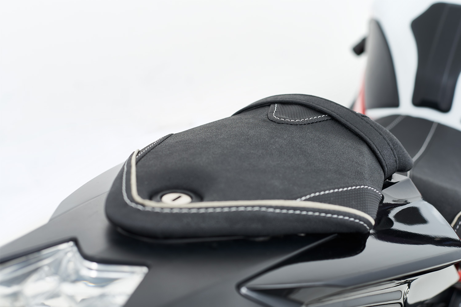 Sweat-repellent, non-slip seat cover, teamed with alcantara piping.