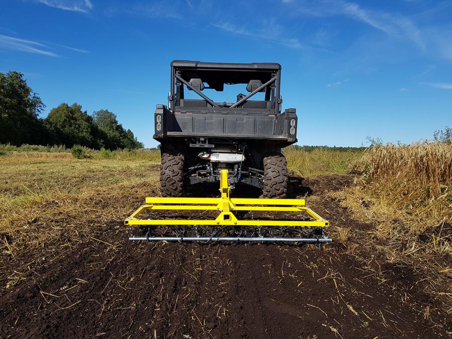 Harrow / drag harrow for surface planning, soil tilling, smoothing and breaking up larger chunks of soil and readying the surface for seed sowing.