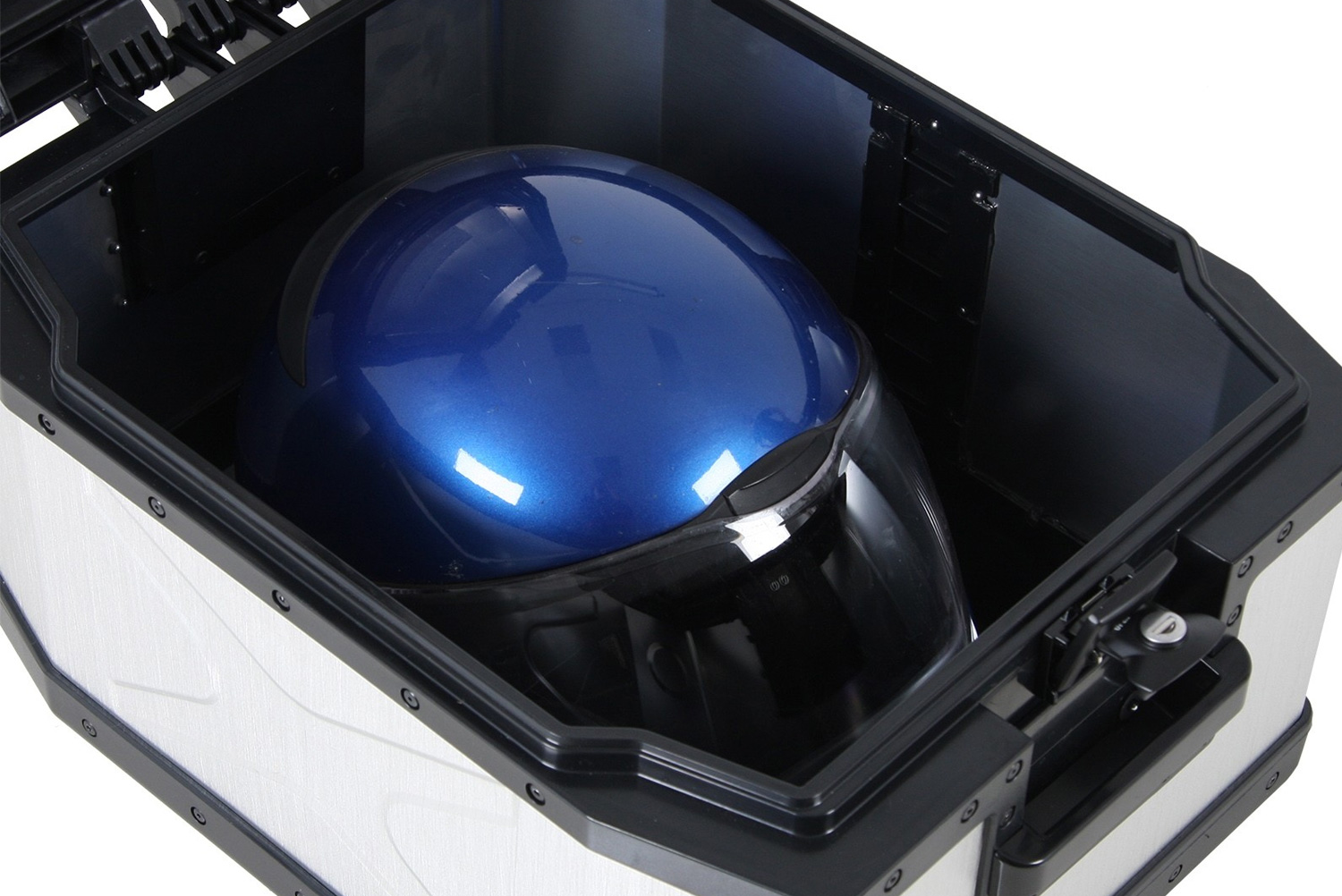 Extremely robust combination of anodised aluminium plates and highly impact-resistant plastic parts. Form and function both enhance the 1200 GS and, in the sum of their features, are a solid testament to German workmanship. The facts:: New, contemporary design (by Targa-Design / München). Rounded impact edges. Absorbs blows and ground impact. Sturdy metal locks with cylindrical barrels. Recessed lashing eyes. Integrated handle recesses. Top loader. Removable lid. Completely waterproof. Panniers and top box can be supplied with a single key. Quick lock for mounting on pannier rack. Available with a wide range of special accessories. Made in Germany. The highly intricate plastic connection between lid and case body is disproportionately more robust and warpfree than an inflexible aluminium profile connection. This is proof that a superior price/performance ratio can also come “Made in Germany”.For all Hepco & Becker and Krauser pannier- and topcase carrier.