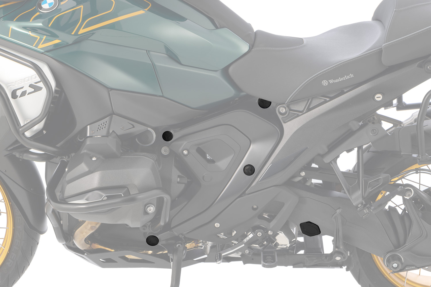 Täydellinen istuvuus takaa tukevan ja häviämättömän kiinnityksen – 8-osainen Wunderlich rungon suojatulppasarja BMW R 1300 GS:ään