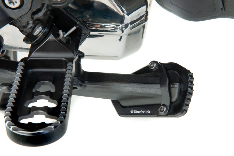 The Wunderlich side stand enlarger reduces the risk of your BMW R 1300 GS and GS Adventure slowly and unnoticed sinking into softened ground or hot tarmac